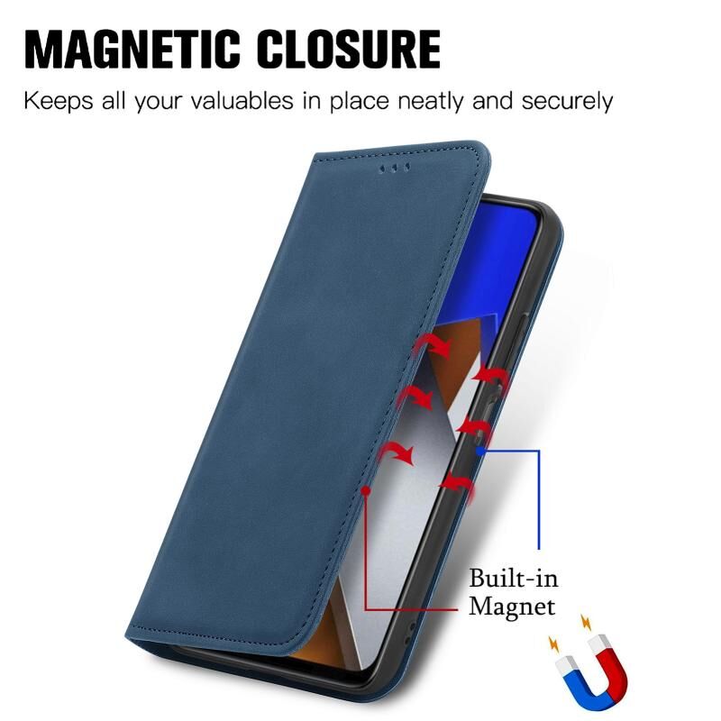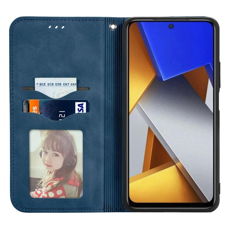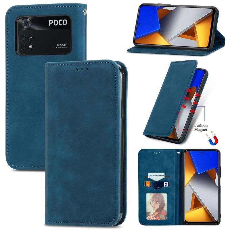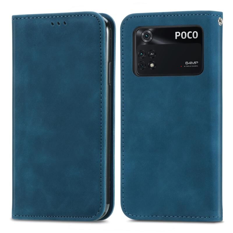 Θήκη τηλεφώνου από δέρμα με μαγνητικό κλείσιμο και αίσθηση retro για Xiaomi Poco M4 Pro (Μπλε)