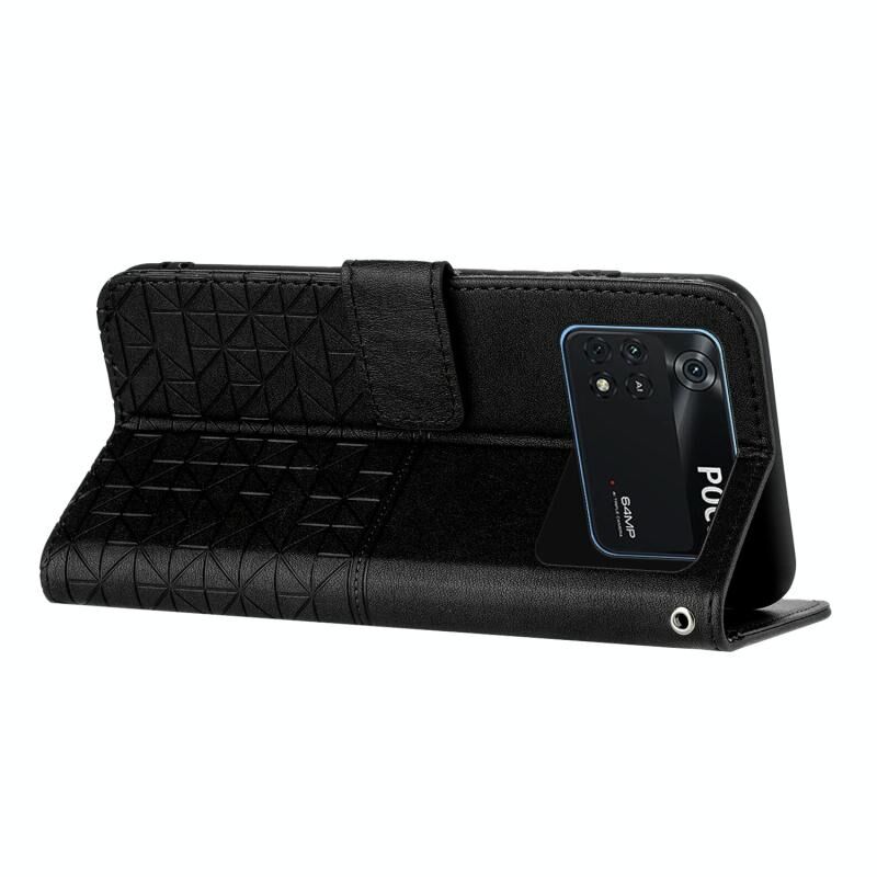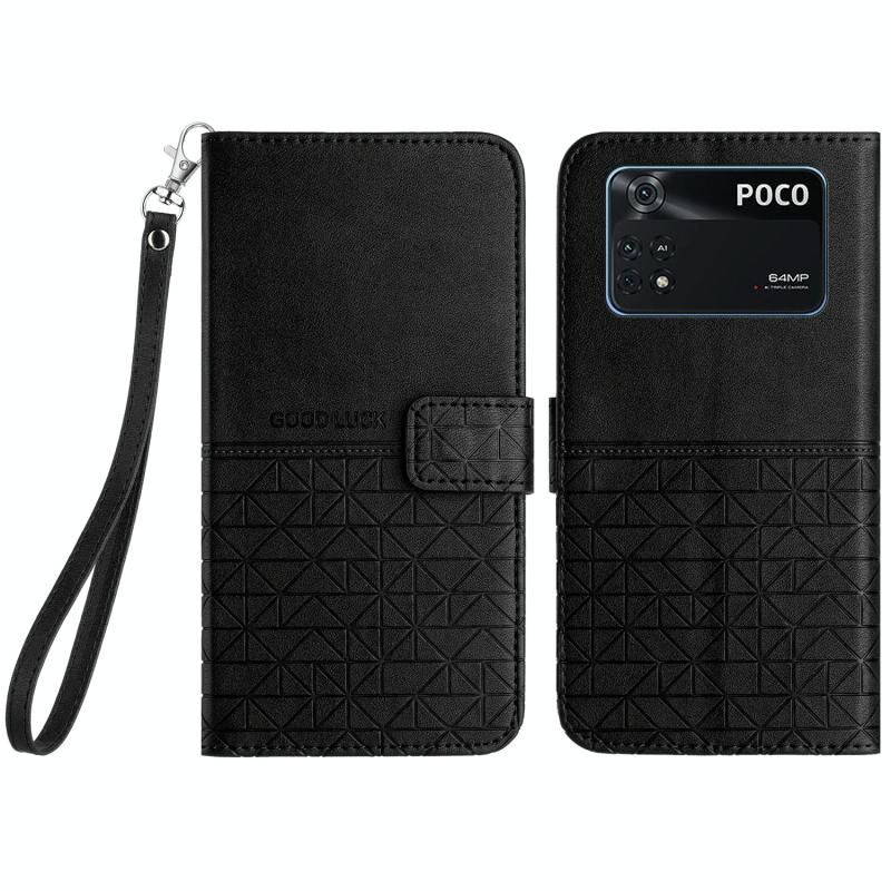 Θήκη δερμάτινη με κορδόνι για Xiaomi Poco M4 Pro - Ρομβοειδές σχέδιο (Μαύρο)