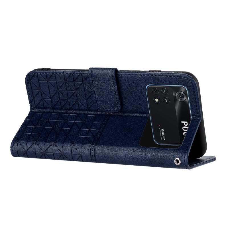 Θήκη δερμάτινη με κορδόνι για Xiaomi Poco M4 Pro - Ρομβοειδές σχέδιο (Μπλε)