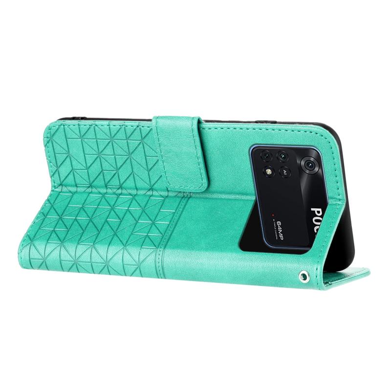 Θήκη δερμάτινη με κορδόνι για Xiaomi Poco M4 Pro - Ρομβοειδές σχέδιο (Πράσινο)