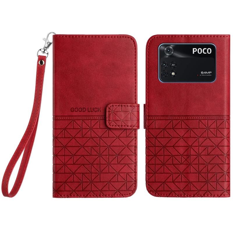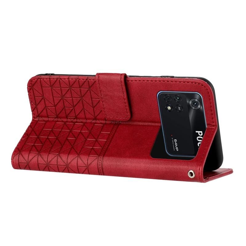 Θήκη δερμάτινη με κορδόνι για Xiaomi Poco M4 Pro - Ρομβοειδές σχέδιο (Κόκκινο)