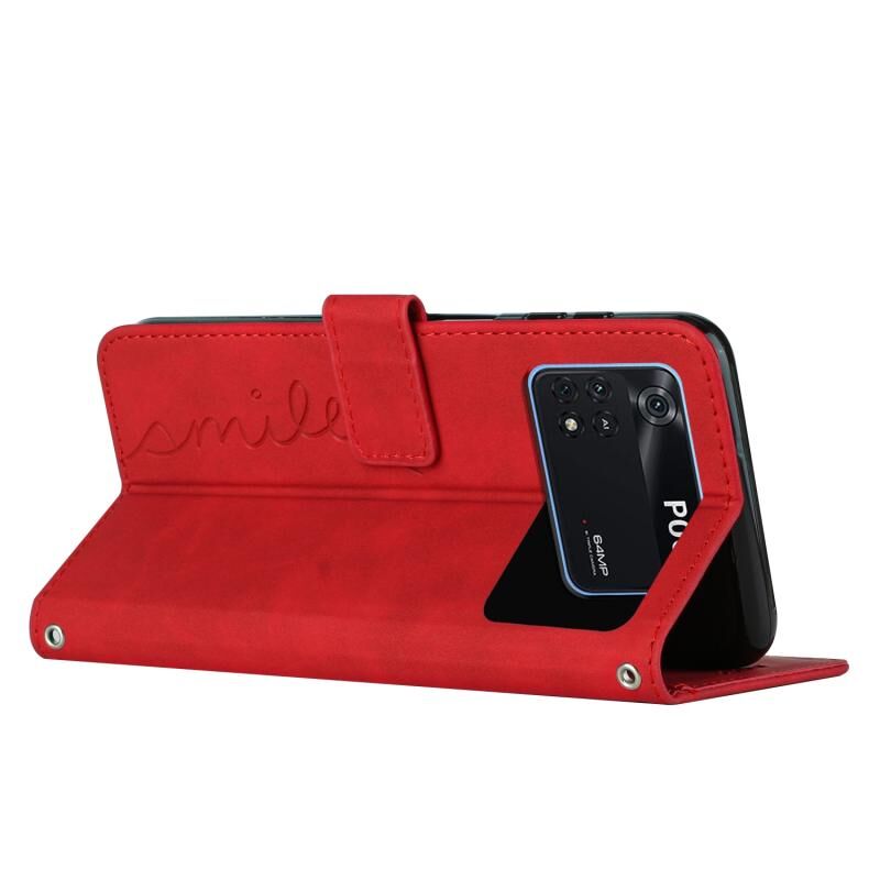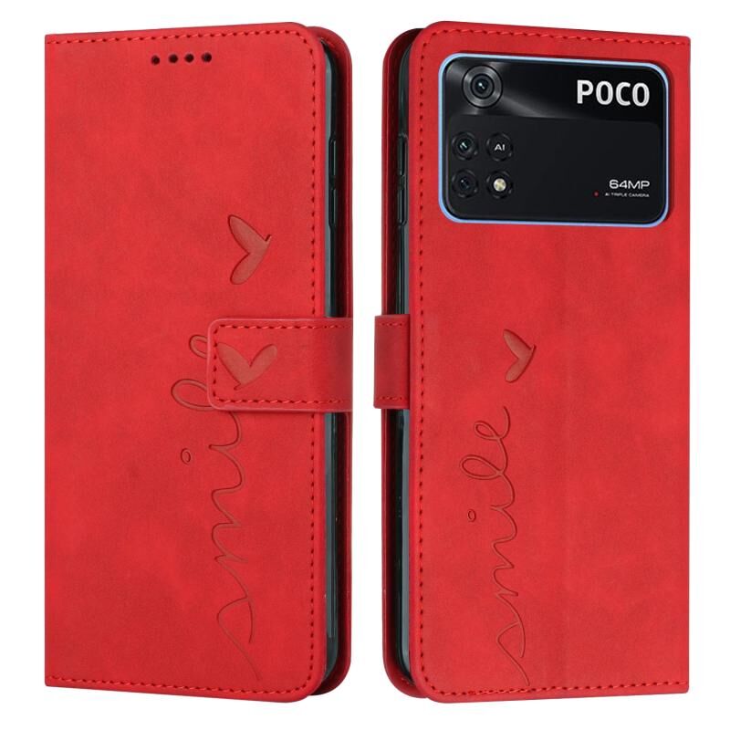 Θήκη δερμάτινη με σχέδιο καρδιάς για Xiaomi Poco M4 Pro (Κόκκινο)