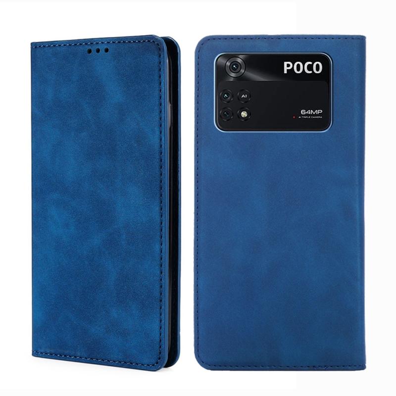 Για Xiaomi Poco M4 Pro Δερμάτινη Θήκη Flip με Μαγνητικό Κλείσιμο (Μπλε)