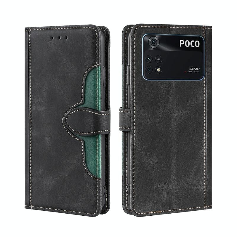 Για Xiaomi Poco M4 Pro Stitching δέρμα αίσθηση μαγνητική πόρπη οριζόντια Flip PU δέρμα υπόθεση (μαύρο)