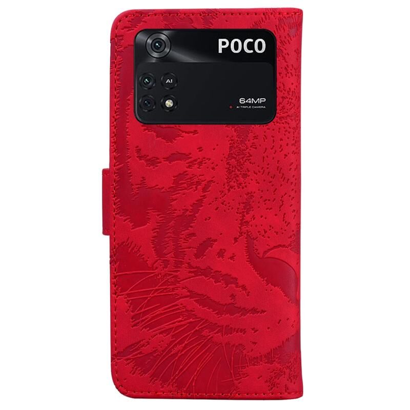 Θήκη τηλεφώνου από δέρμα με οριζόντιο άνοιγμα και ανάγλυφο σχέδιο τίγρης για Xiaomi Poco M4 Pro (Ροζ)