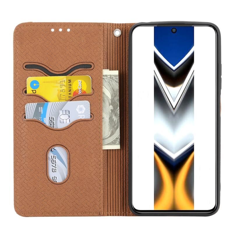 Για Xiaomi Poco M4 Pro Υφαντή υφή ραφή μαγνητική PU δέρμα τηλέφωνο υπόθεση (Καφέ)