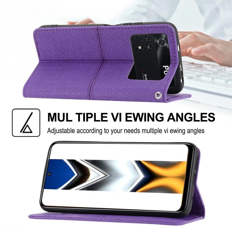 Για Xiaomi Poco M4 Pro Υφαντή υφή ραφή μαγνητική PU δέρμα τηλέφωνο υπόθεση (Μωβ)
