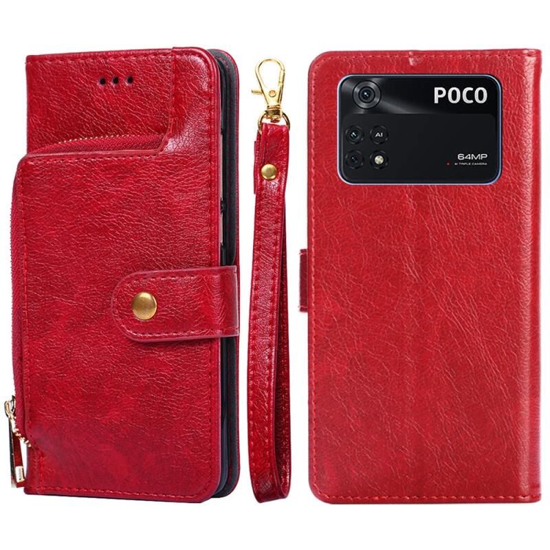 Θήκη τηλεφώνου δερμάτινη με φερμουάρ για Xiaomi Poco M4 Pro (Κόκκινη)