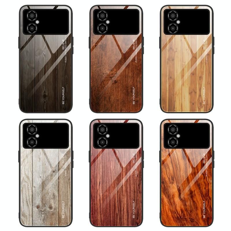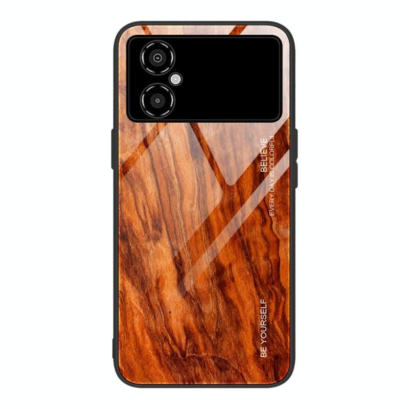 Θήκη τηλεφώνου Xiaomi Poco M4 από ξύλο και γυαλί (Ανοιχτό καφέ)