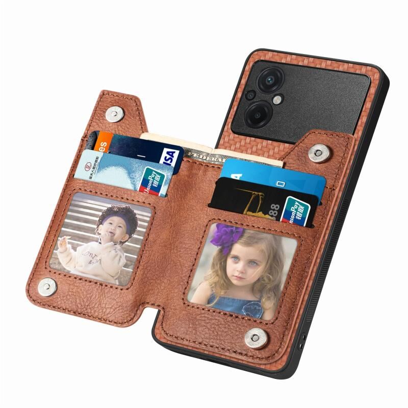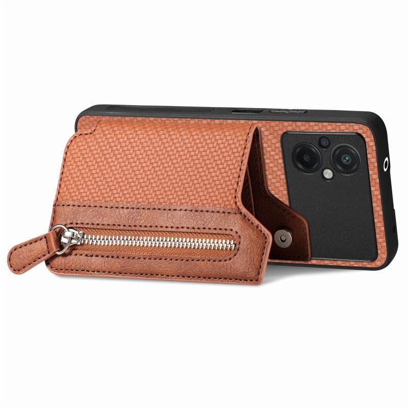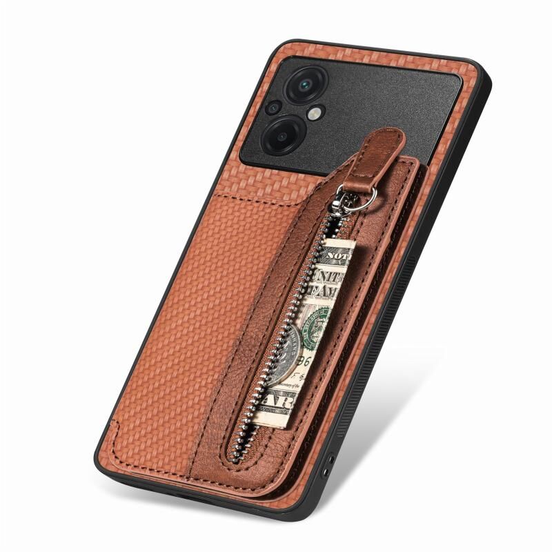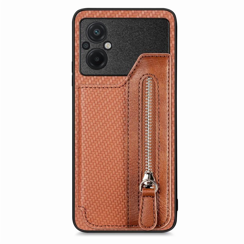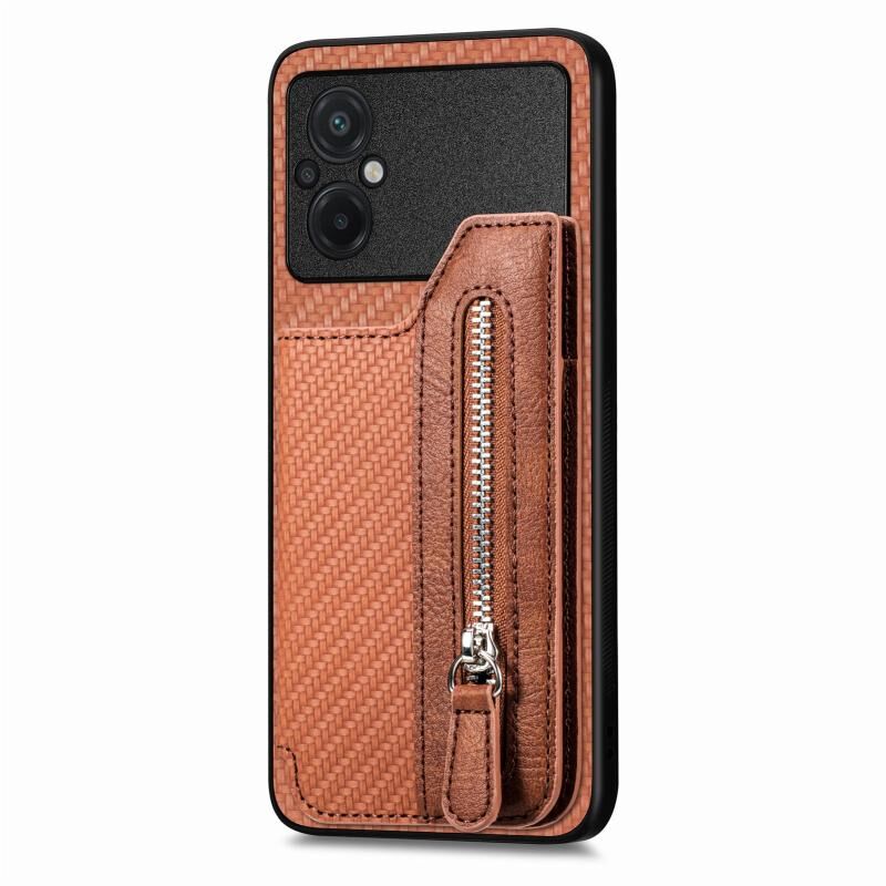 Για Xiaomi Poco M5 4G Carbon Fiber Flip φερμουάρ πορτοφόλι τηλέφωνο υπόθεση (καφέ)