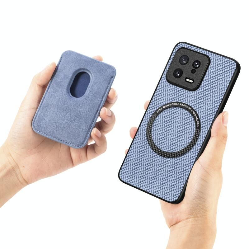 Θήκη τηλεφώνου Xiaomi Poco M5 4G από ανθρακονήματα και δέρμα με μαγνητική βάση για κάρτες (Καφέ)