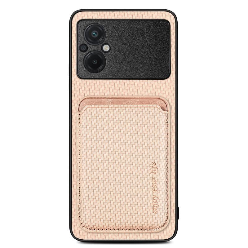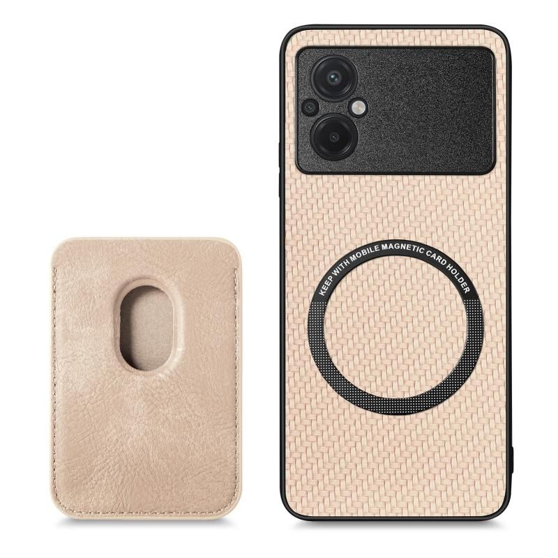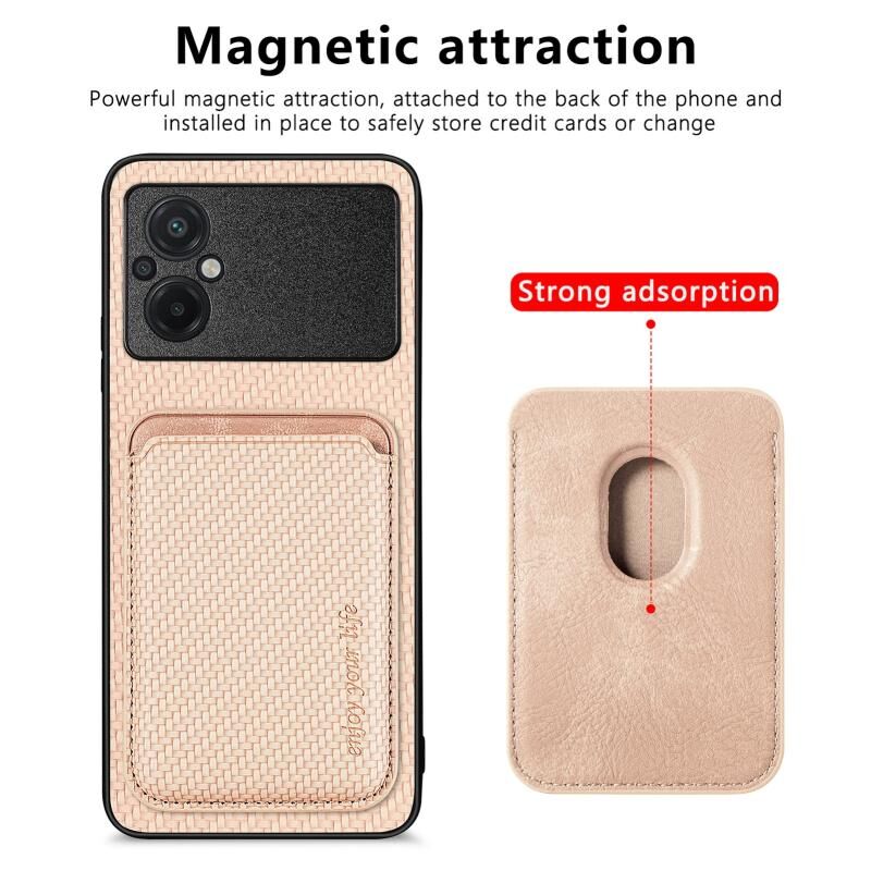 Θήκη τηλεφώνου Xiaomi Poco M5 4G από ανθρακονήματα και δέρμα με μαγνητική βάση για κάρτες (Χακί)