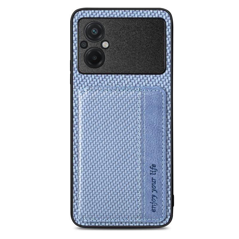 Για Xiaomi POCO M5 4G Carbon Fiber μαγνητική κάρτα τσάντα υπόθεση τηλεφώνου (μπλε)