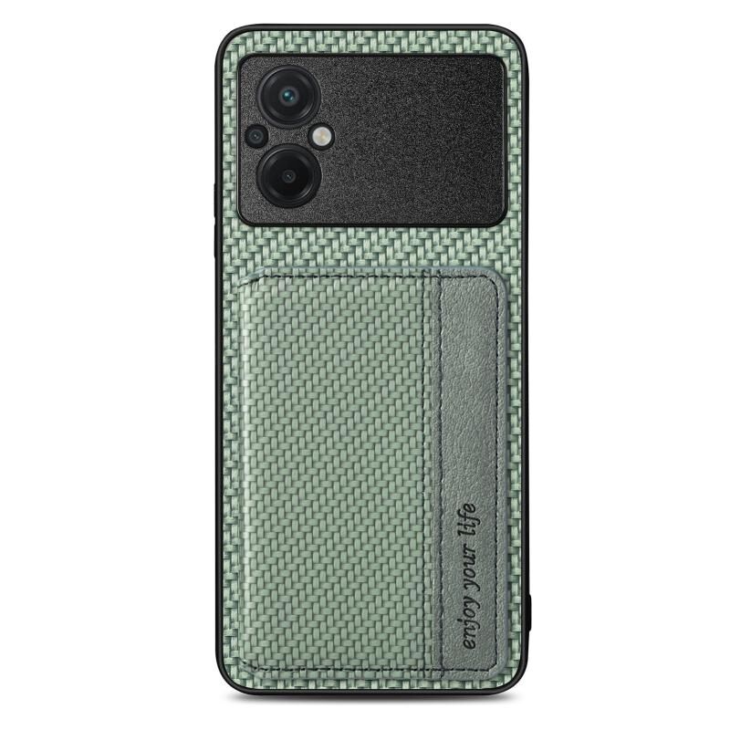 Για Xiaomi POCO M5 4G Carbon Fiber μαγνητική κάρτα τσάντα υπόθεση τηλεφώνου (πράσινο)