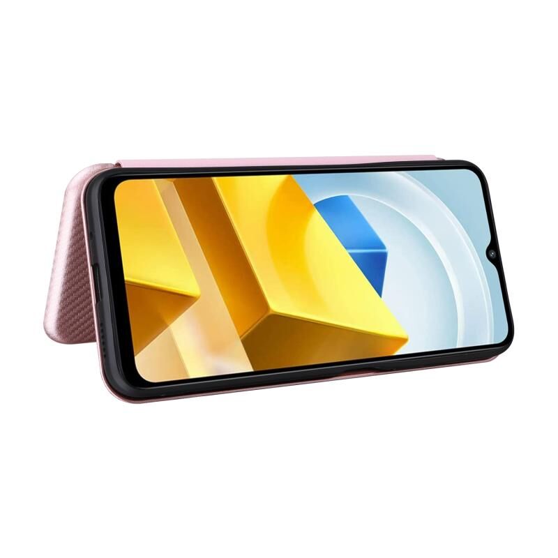 Για Xiaomi Poco M5 4G Carbon Fiber Texture Leather Phone Case (ροζ)