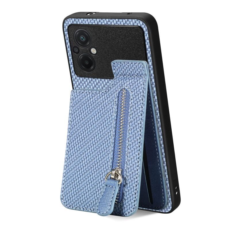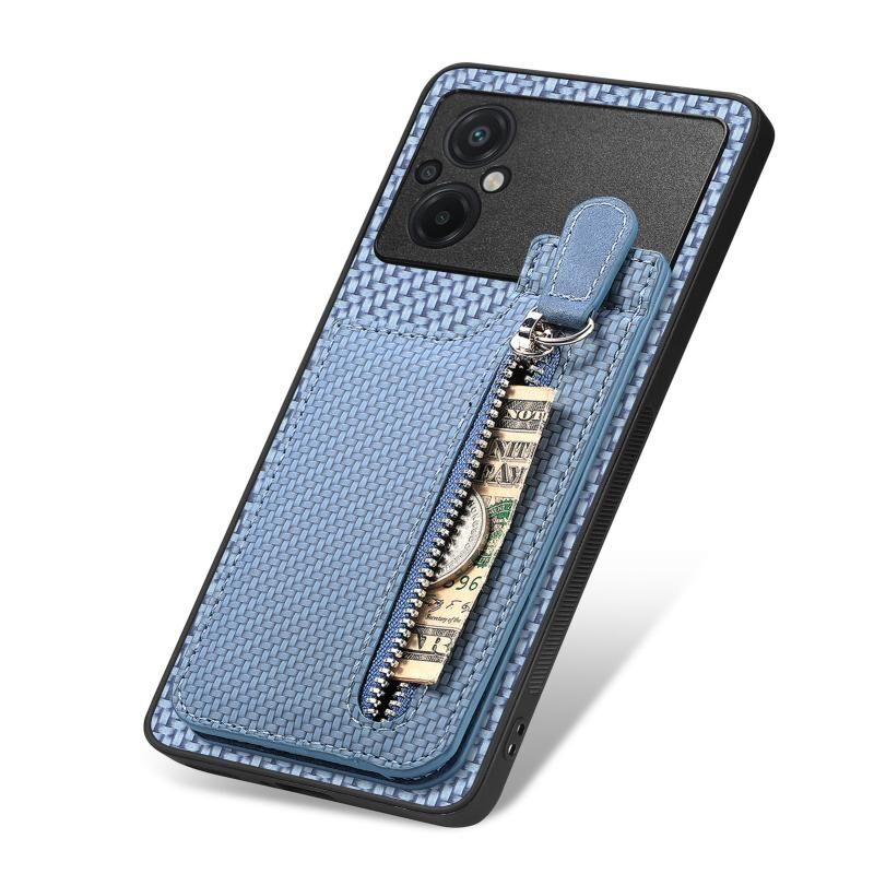 Για Xiaomi POCO M5 4G Carbon Fiber Κάθετη Flip φερμουάρ τηλέφωνο υπόθεση (μπλε)