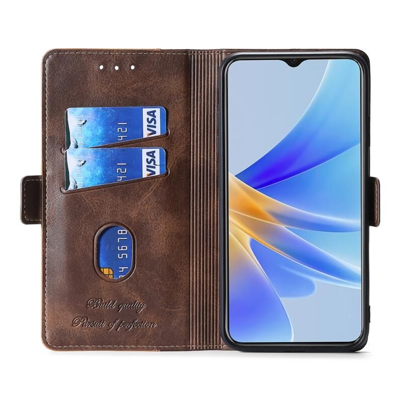 Για Xiaomi Poco M5 4G αντίθεση χρώμα πλευρά πόρπη δερμάτινη θήκη τηλεφώνου υπόθεση (Σκούρο καφέ και χρυσό)