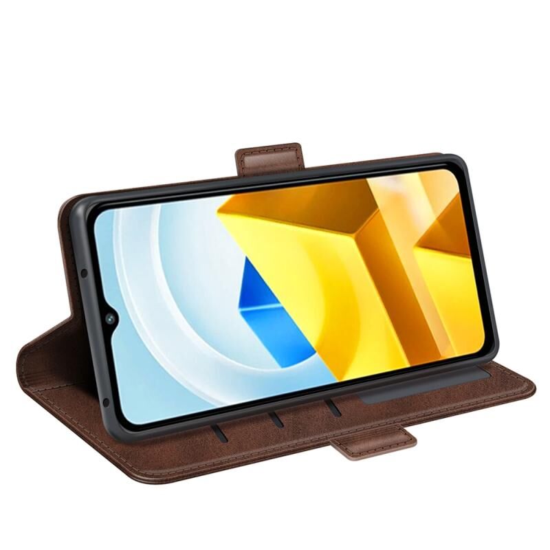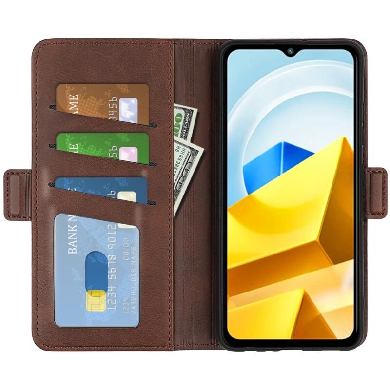 Για Xiaomi Poco M5 4G διπλής όψης μαγνητική αγκράφα οριζόντια Flip δέρμα τηλέφωνο υπόθεση (Καφέ)