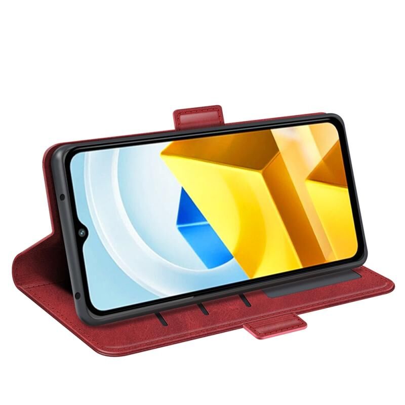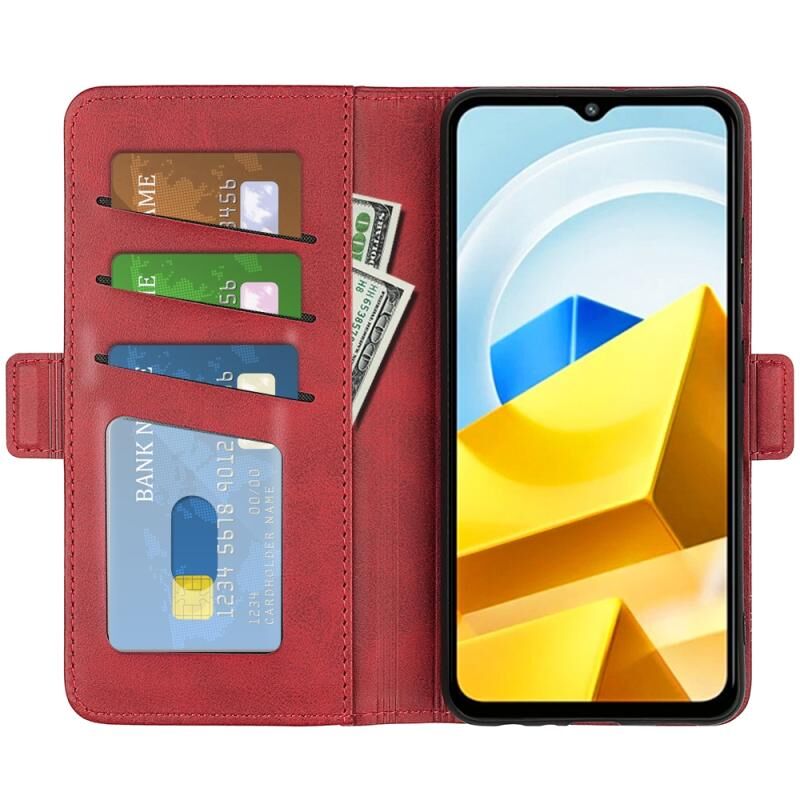Για Xiaomi Poco M5 4G διπλής όψης μαγνητική πόρπη οριζόντια Flip δερμάτινη θήκη τηλεφώνου (Κόκκινο)