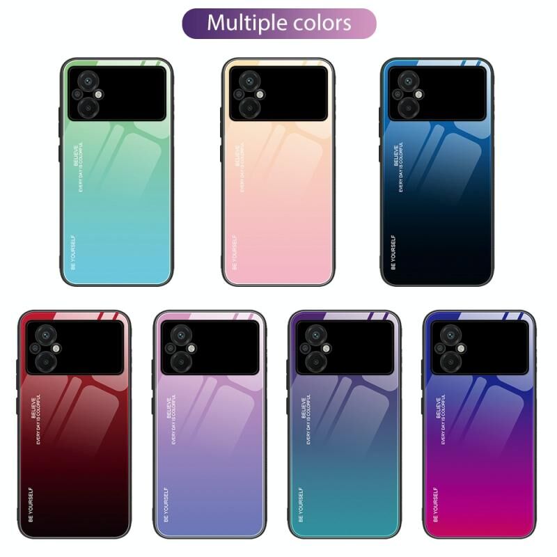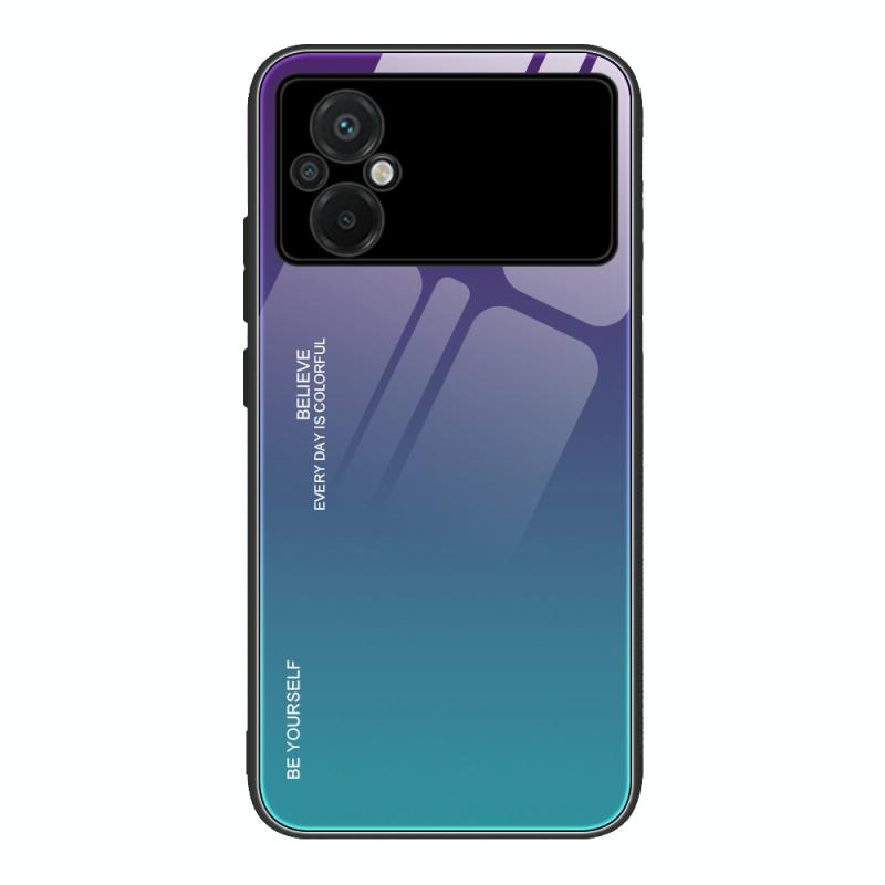 Θήκη τηλεφώνου από γυαλί με διαβαθμιστικό χρώμα για Xiaomi Poco M5 4G Global (Ροζ Μωβ)