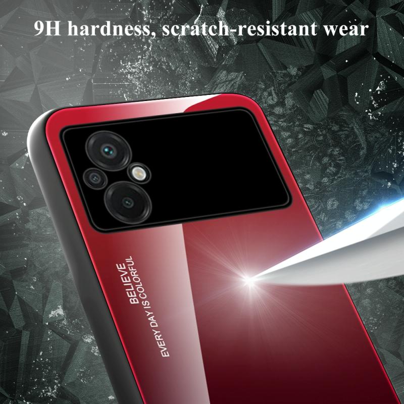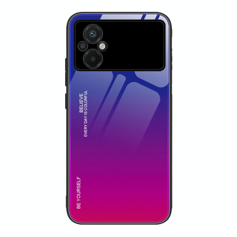 Θήκη τηλεφώνου από γυαλί με διαβαθμιστικό χρώμα για Xiaomi Poco M5 4G Global (Ροζ Μωβ)