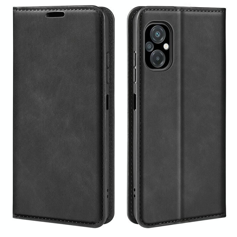 Για Xiaomi Poco M5 4G Retro-skin Μαγνητική δερμάτινη θήκη τηλεφώνου αναρρόφησης (Μαύρο)