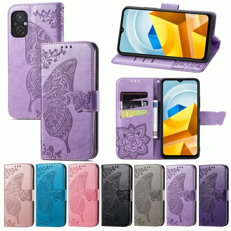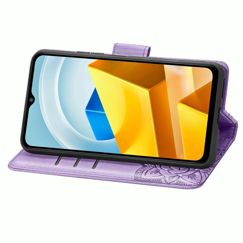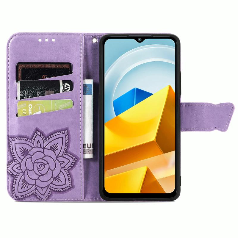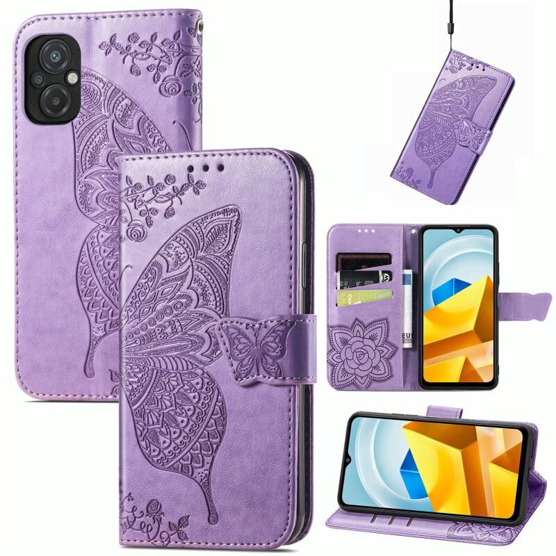 For Xiaomi Poco M5 Butterfly Love Flower Embossed Leather Phone Case(Lavender)