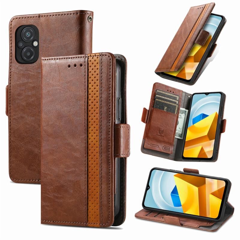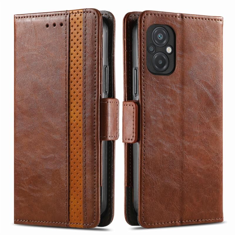 Για Xiaomi Poco M5 CaseNeo Splicing Διπλή μαγνητική πόρπη δερμάτινη θήκη τηλεφώνου (καφέ)