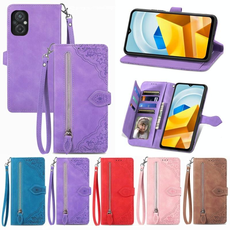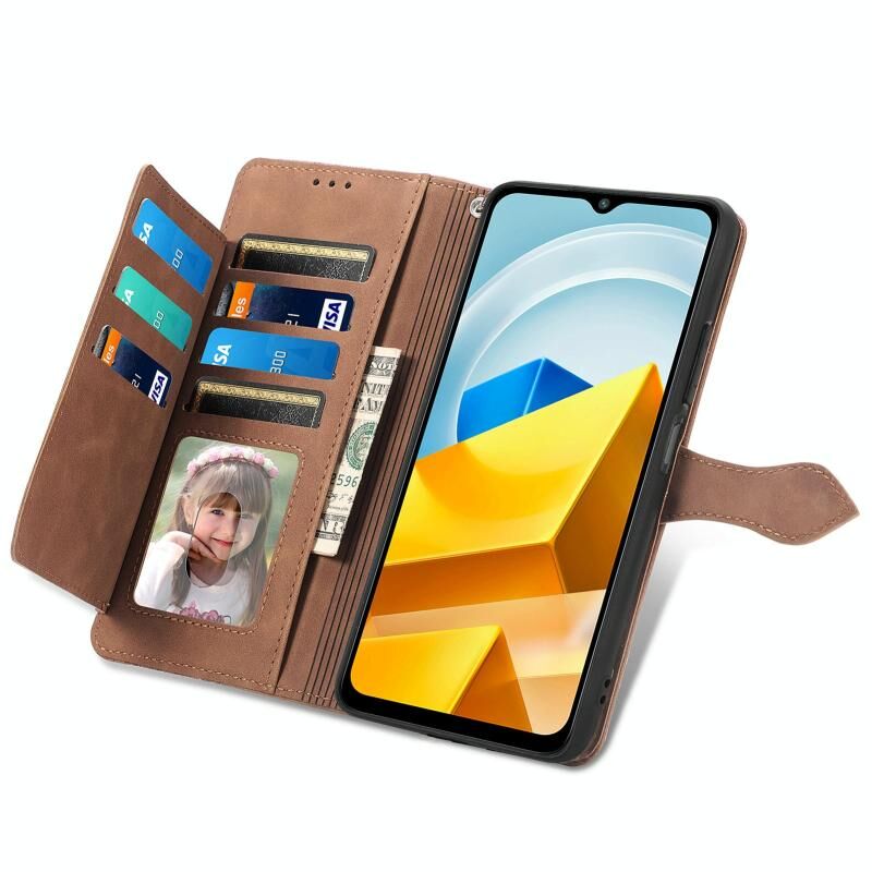 Για Xiaomi Poco M5 Ανάγλυφο λουλούδι Shockproof δέρμα τηλέφωνο υπόθεση (καφέ)