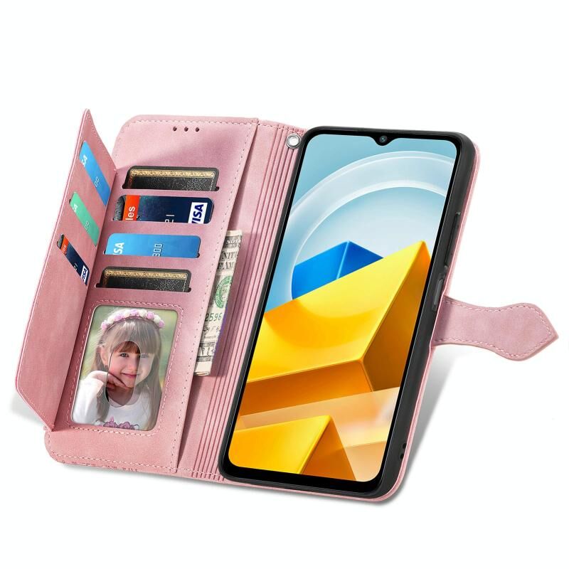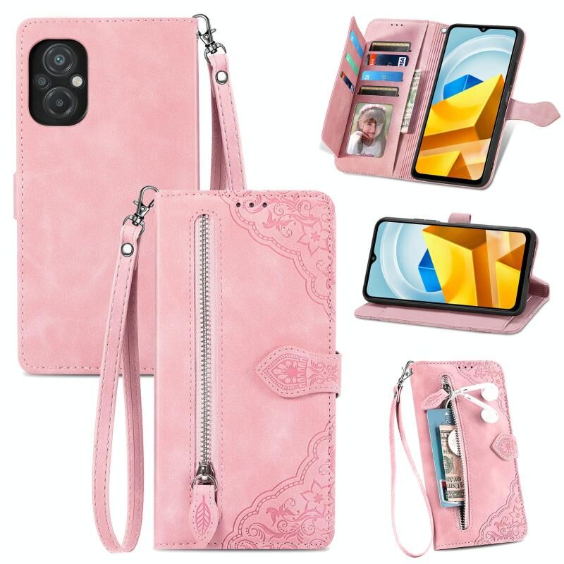 Για Xiaomi Poco M5 Ανάγλυφο λουλούδι Shockproof δέρμα τηλέφωνο υπόθεση (Rose Gold)