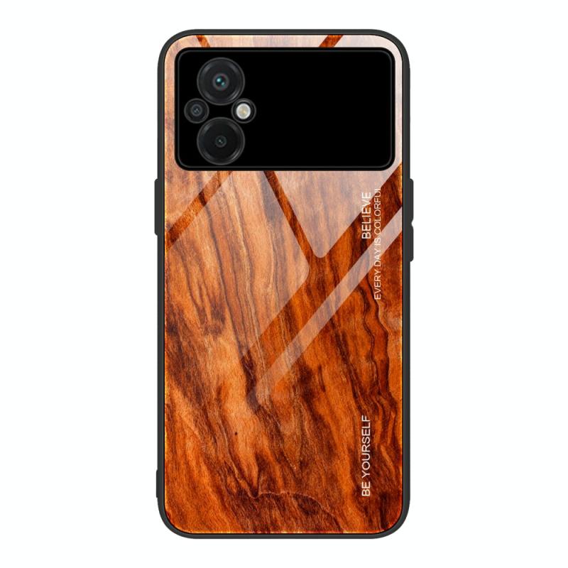 Θήκη τηλεφώνου από γυαλί με σχέδιο ξύλου για Xiaomi Poco M5 (Ανοιχτό καφέ)