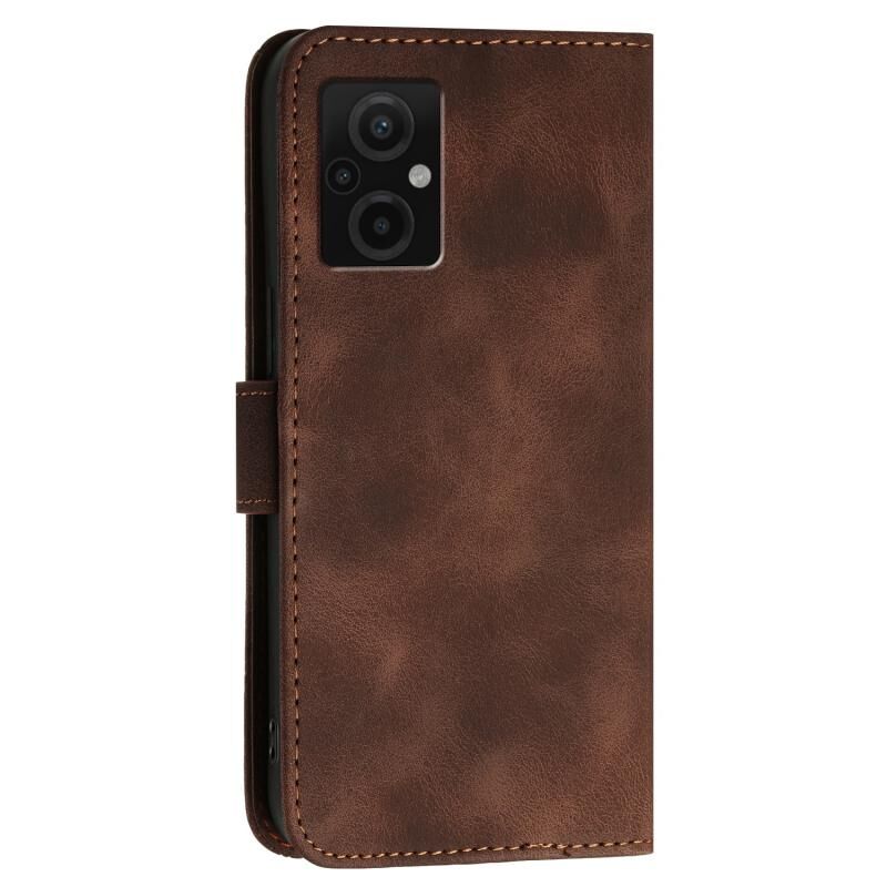 Θήκη τηλεφώνου δερμάτινη με ανάγλυφο σχέδιο πλέγματος και πεταλούδας για Xiaomi Poco M5 YX0080 με κορδόνι (Καφέ)