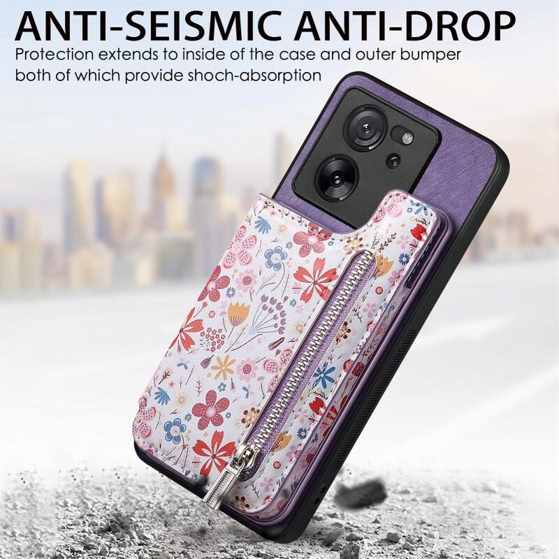 Για Xiaomi Poco M5s 4G Ρετρό ζωγραφισμένο φερμουάρ πορτοφόλι πίσω υπόθεση τηλεφώνου (Μωβ)