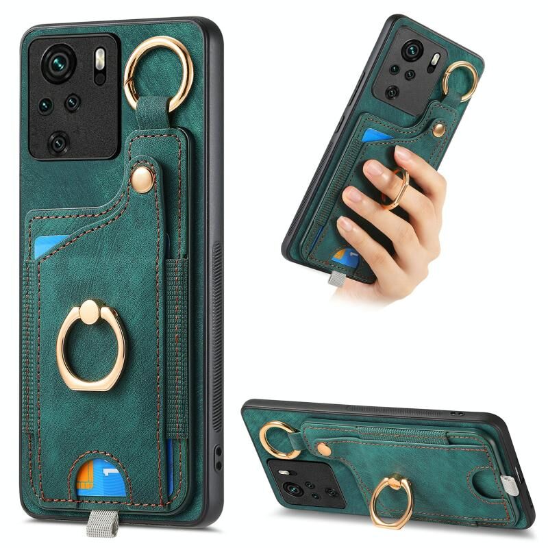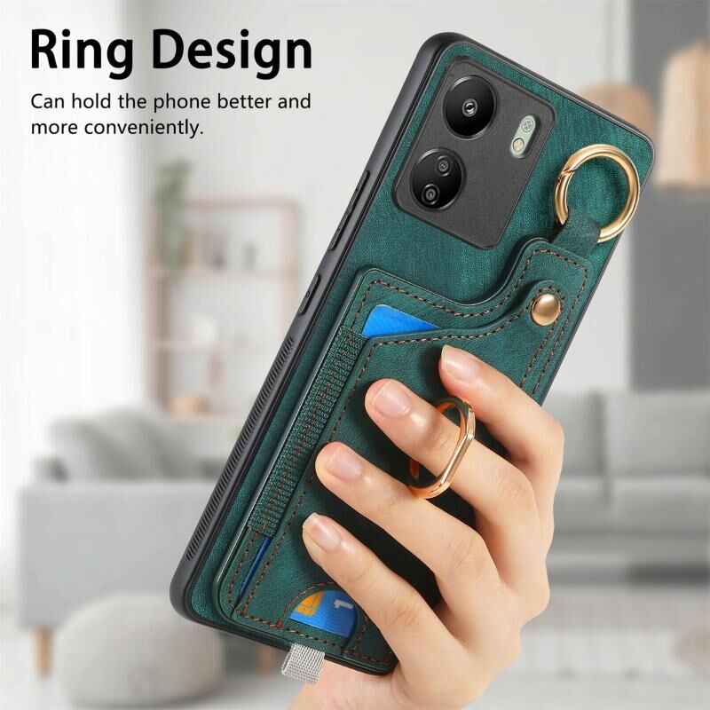Για Xiaomi Poco M5s 4G Ρετρό δέρμα αίσθηση δαχτυλίδι κάρτα τσάντα υπόθεση τηλεφώνου με Hang Loop (πράσινο)