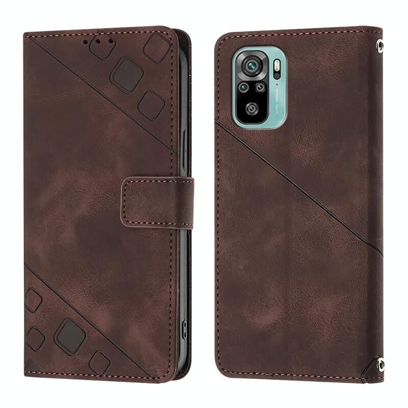 Για Xiaomi Poco M5s / Redmi Note 11 SE Ινδία δέρμα αίσθηση ανάγλυφη δερμάτινη θήκη τηλεφώνου (Καφέ)