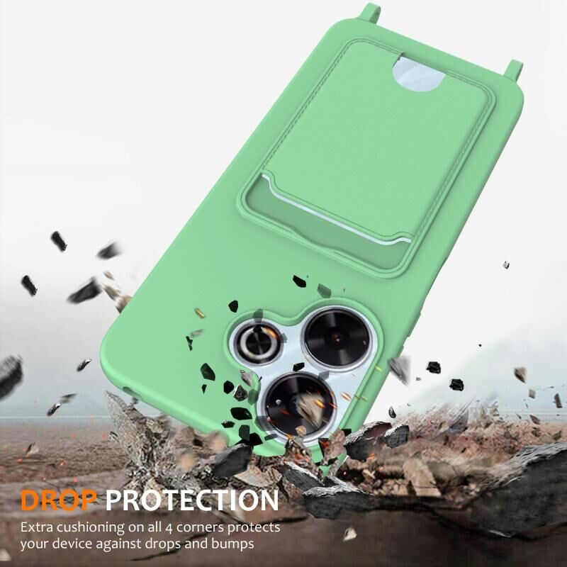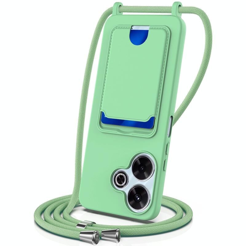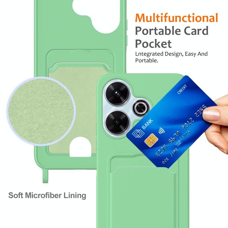 Για Xiaomi Poco M6 4G / M6 Plus ενσωματωμένη κάρτα τσάντα τσάντα στερεό χρώμα υγρό σιλικόνης τηλέφωνο υπόθεση με κορδόνι (πράσινο)
