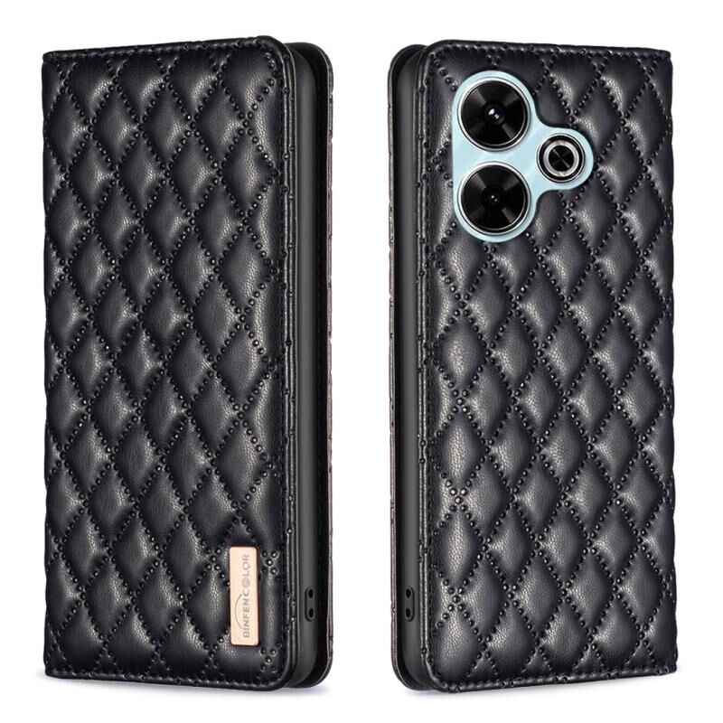Για Xiaomi Poco M6 4G / Redmi 13 4G Diamond Lattice Μαγνητική δερμάτινη θήκη Flip Phone Case (Μαύρο)