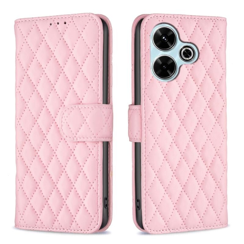 Θήκη τηλεφώνου τύπου πορτοφολιού με δερμάτινη επένδυση και σχέδιο διαμαντένιου πλέγματος για Xiaomi Poco M6 4G / Redmi 13 4G (Λευκό)
