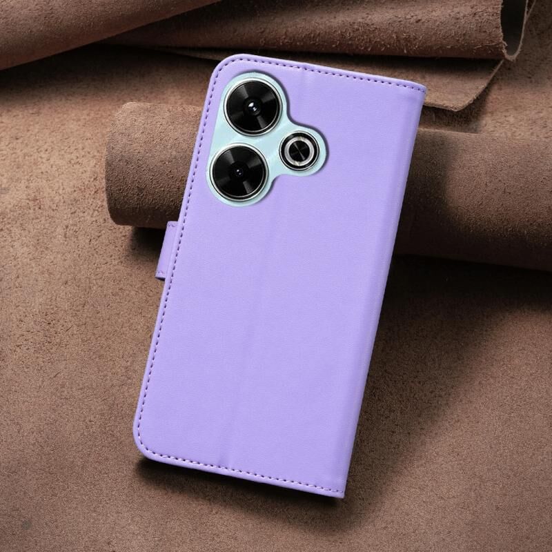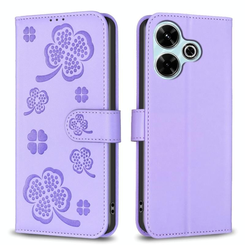 Για Xiaomi Poco M6 4G / Redmi 13 4G τετράφυλλο ανάγλυφη δερμάτινη θήκη τηλεφώνου (μωβ)