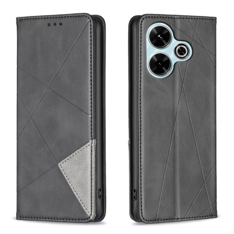 Για Xiaomi Poco M6 4G / Redmi 13 4G Rhombus υφή μαγνητική δερμάτινη θήκη τηλεφώνου (μαύρο)