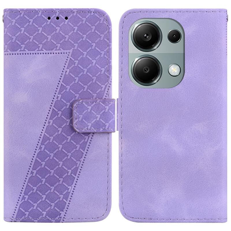 Για το Xiaomi Poco M6 Pro 4G 7-shaped ανάγλυφη δερμάτινη θήκη τηλεφώνου (μωβ)