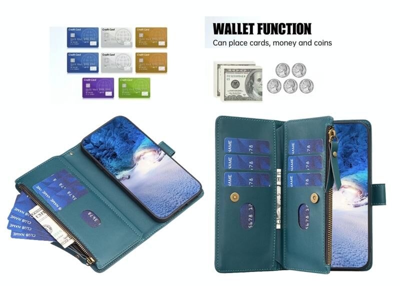 4. Πορτοφόλι με φερμουάρ: Η σούπερ υποδοχή πολλαπλών καρτών μπορεί να χωρέσει 9 κάρτες. το άνοιγμα και το κλείσιμο της θήκης μετρητών με φερμουάρ μπορεί να προστατεύσει τα μετρητά σας. Άνετο και πρακτικό για να βγείτε έξω μια τσάντα κινητού τηλεφώνου αρκετά!