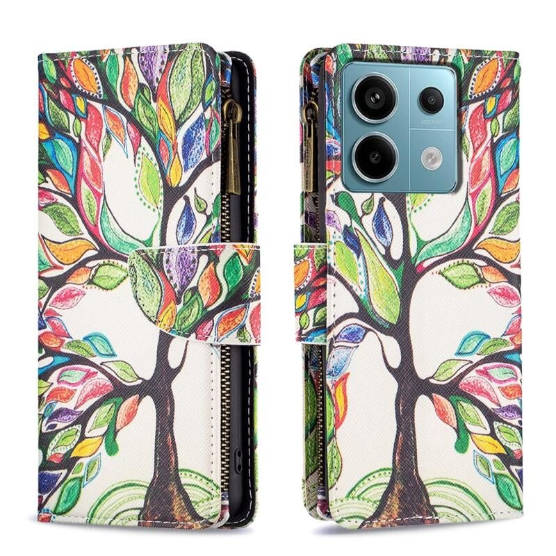 For Xiaomi Poco M6 Pro 4G Colored Drawing Pattern Zipper Leather Phone Case(Big Tree)