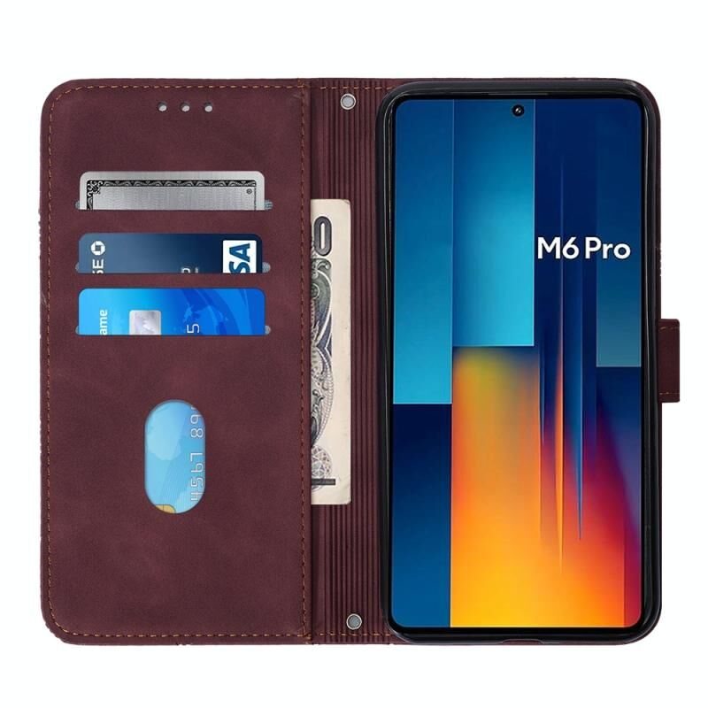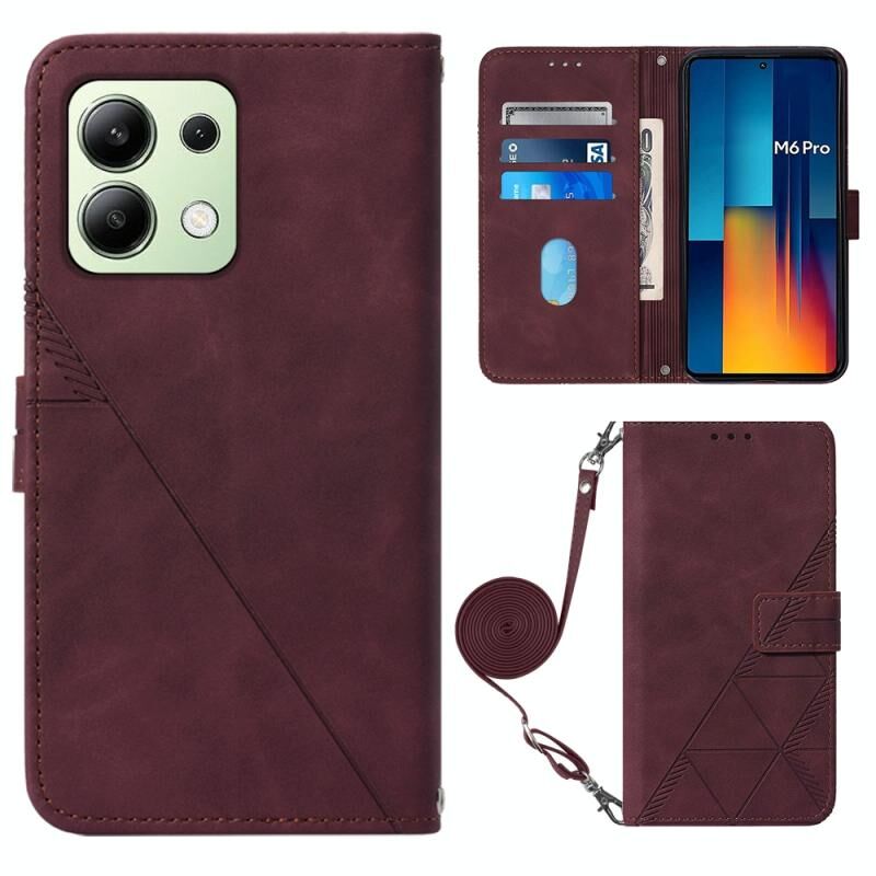 Για Xiaomi Poco M6 Pro 4G Crossbody 3D ανάγλυφο Flip υπόθεση τηλεφώνου από δέρμα (κόκκινο κρασί)