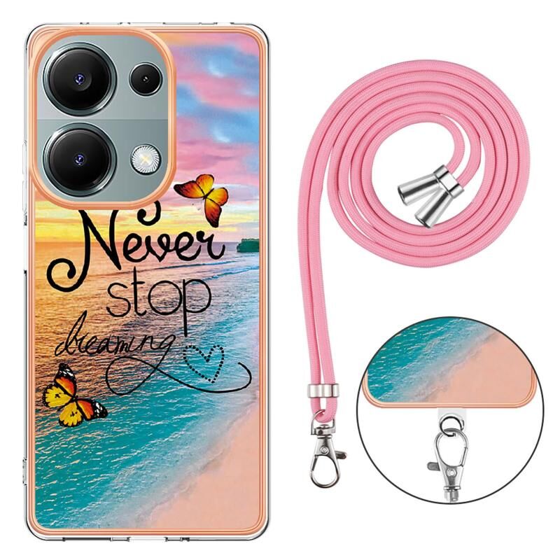 Θήκη κινητού τηλεφώνου για Xiaomi Poco M6 Pro 4G με γαλβανισμό IMD TPU με κορδόνι (Όνειρο Πεταλούδας)