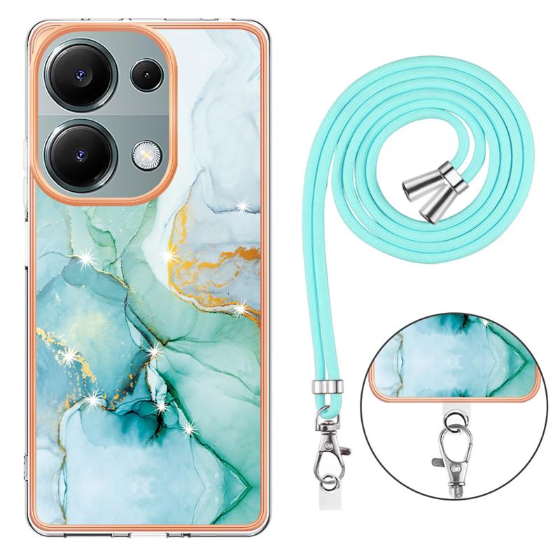 For Xiaomi Poco M6 Pro 4G Electroplating Marble Dual-side IMD Phone Case with Lanyard(Green 003)
