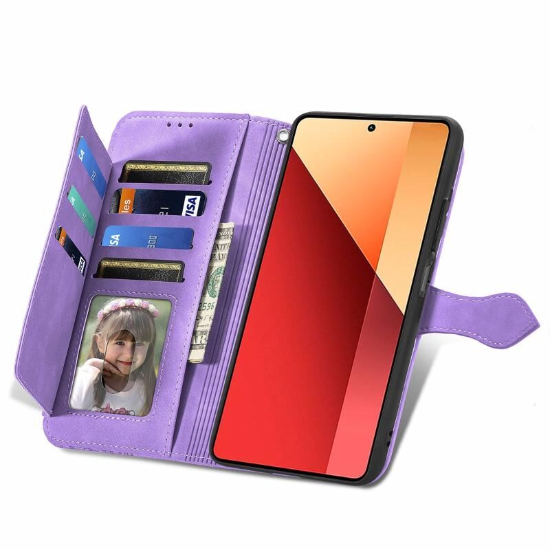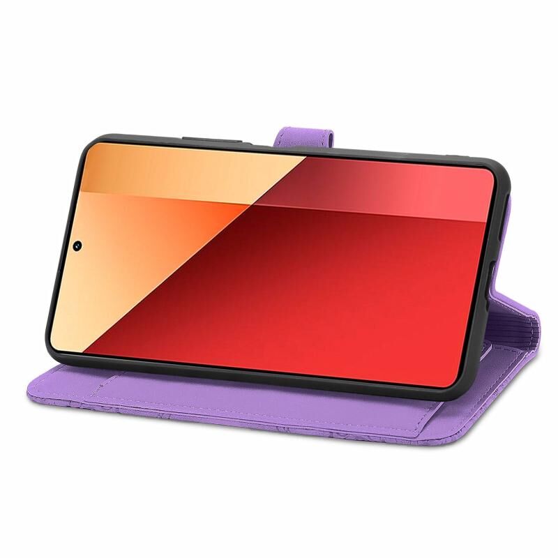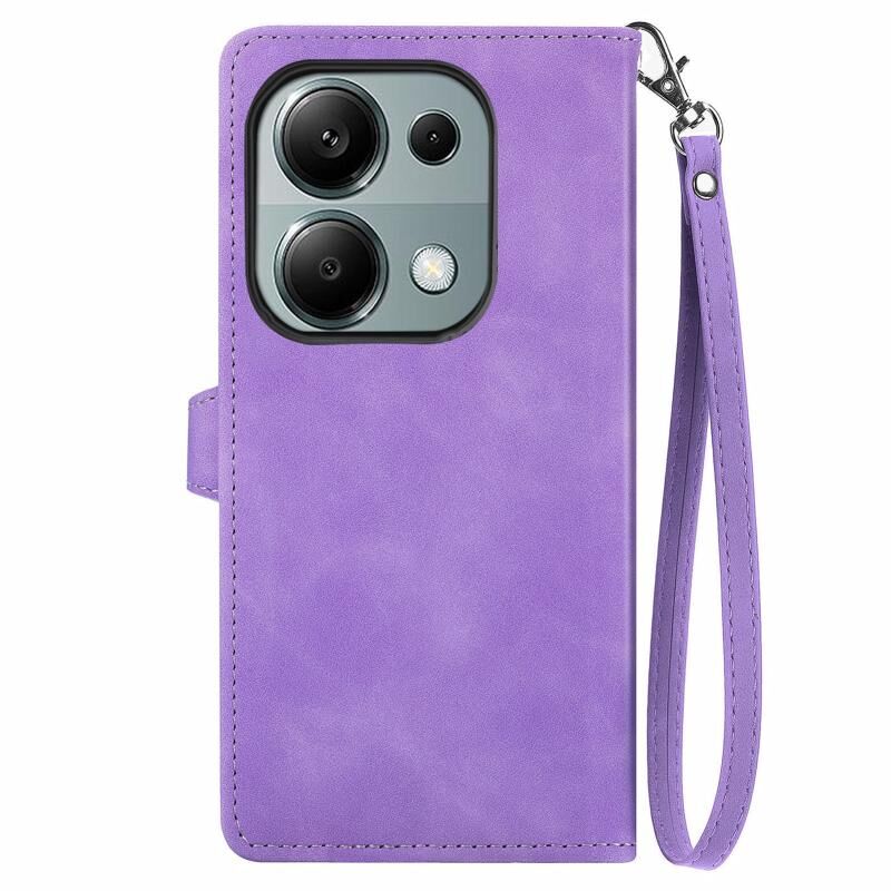 Για Xiaomi Poco M6 Pro 4G ανάγλυφο λουλούδι φερμουάρ δερμάτινη θήκη τηλεφώνου (μωβ)
