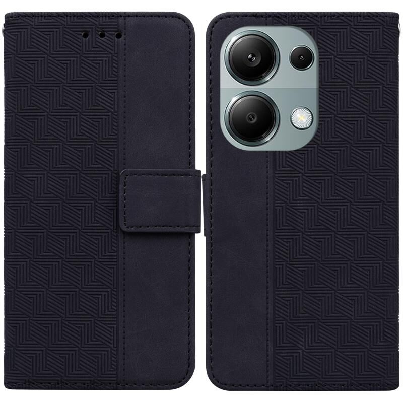 Για Xiaomi Poco M6 Pro 4G Γεωμετρική ανάγλυφη δερμάτινη θήκη τηλεφώνου (μαύρο)