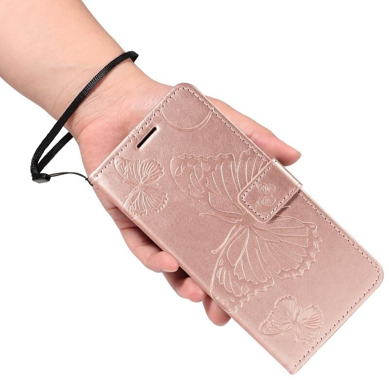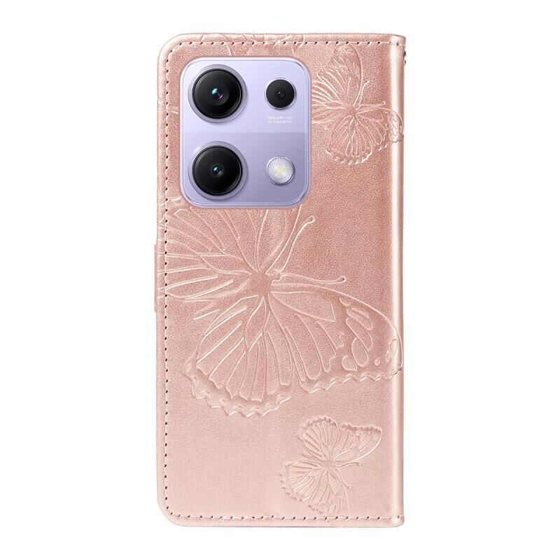 Θήκη τηλεφώνου από δέρμα με ανάγλυφο σχέδιο 3D πεταλούδας, τύπου flip, για Xiaomi Poco M6 Pro 4G Global (Ροζ χρυσός)