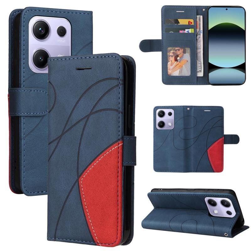 Θήκη τηλεφώνου από δέρμα με αναδιπλούμενο σχέδιο για Xiaomi Poco M6 Pro 4G Global, διχρωμίας (Μπλε)